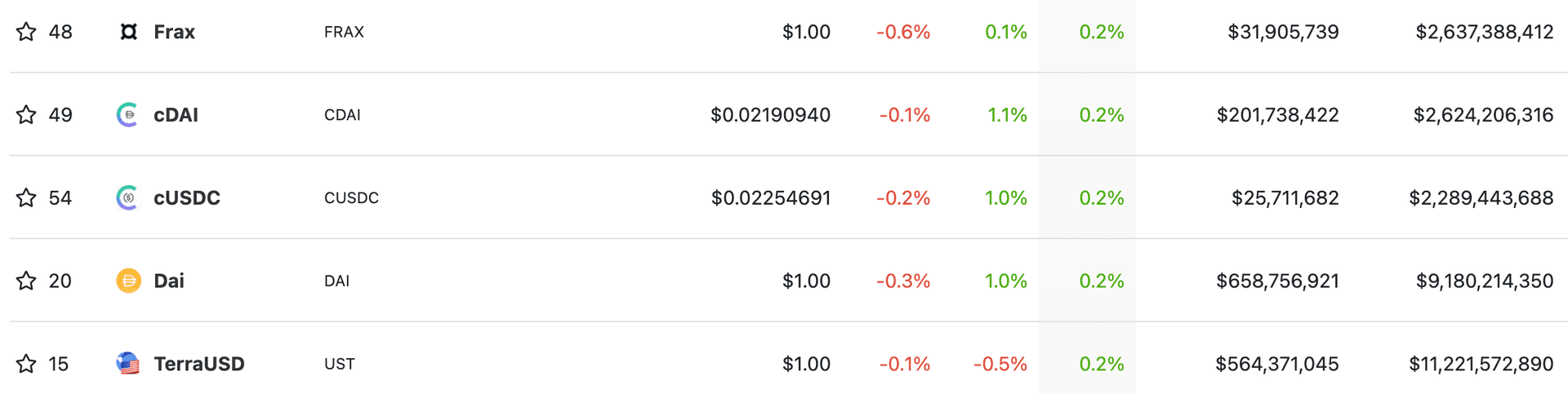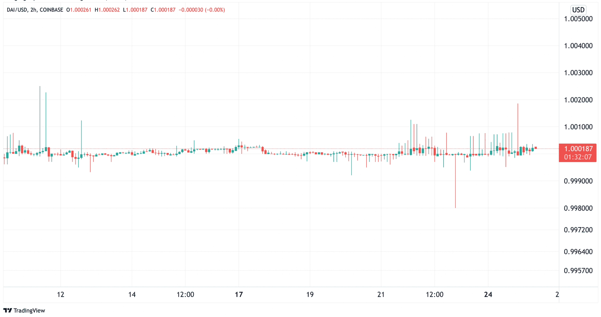 Dai holder seg stabilt på 9,02 kroner (1$). Når markedet kræsjer på lignende måte som forrige uke er det mange som selger sine kryptovalutaer for stablecoins som kan skape store prishopp på stablecoinen. At dai så og si ikke har rykket på seg gjennom disse dagene vitner om en solid stablecoin.