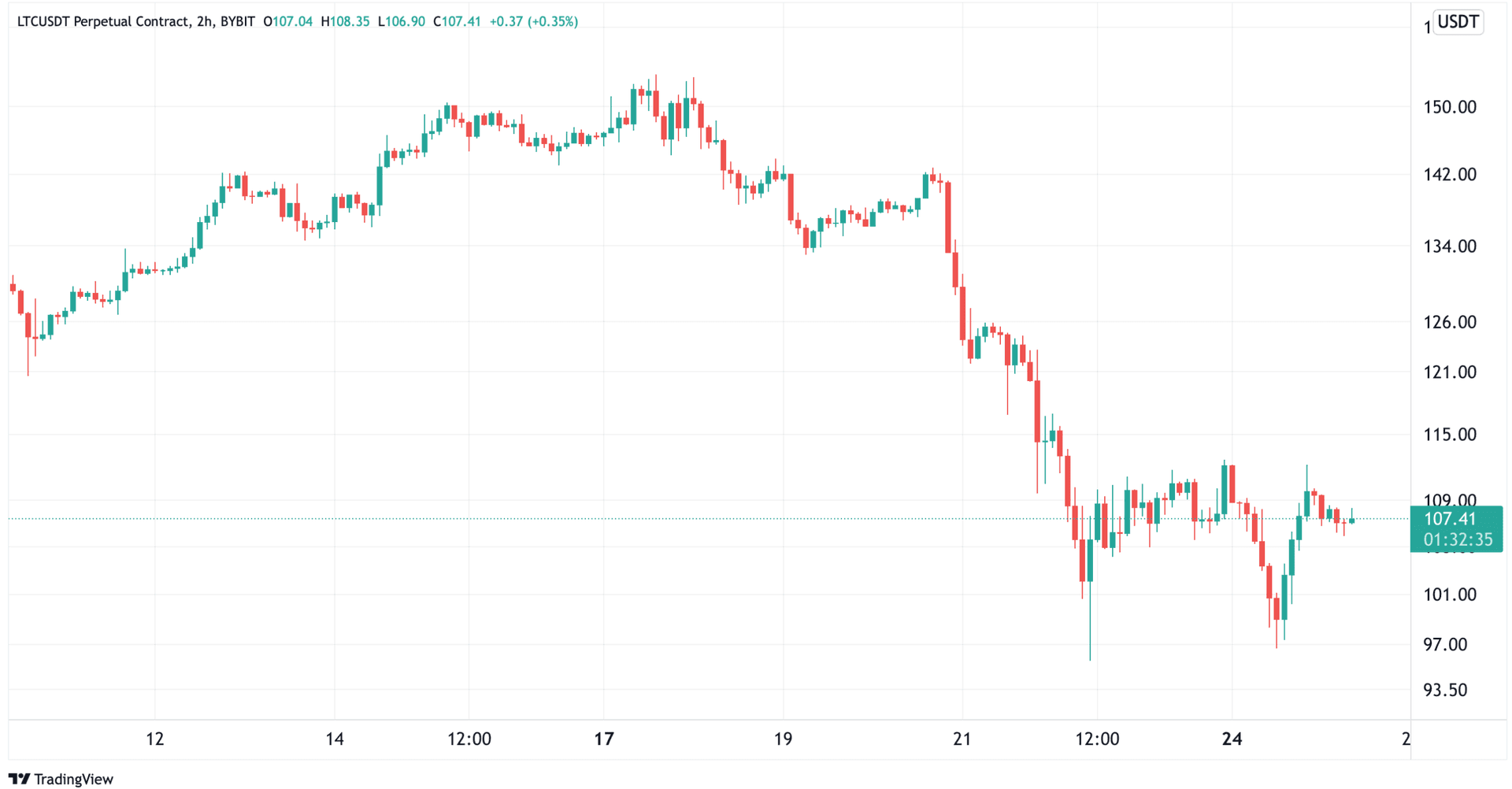 1. Litecoin faller med resten av markedet