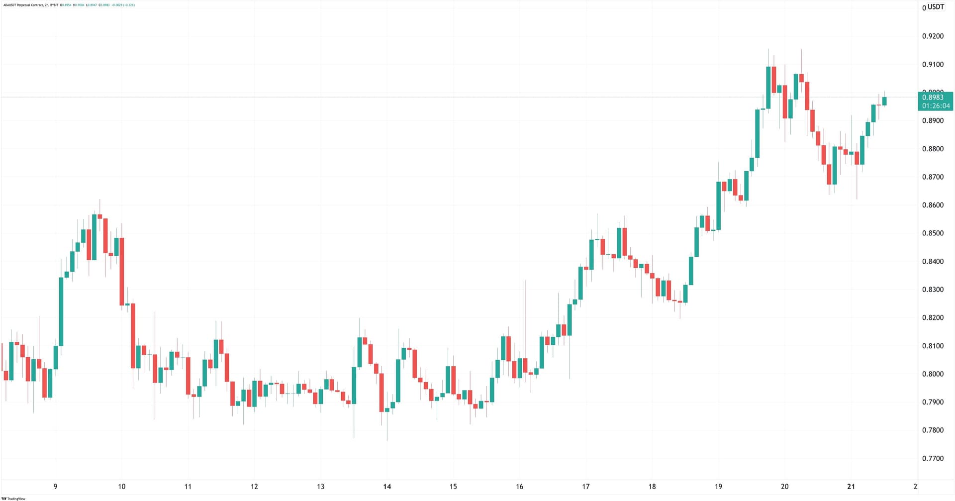 After being in free fall for many months, the ADA price has started to level out and seems to have found strong support of 7 kroner ($0.8). Since the last news update two weeks ago, the price has increased by 11% from 7 kroner ($0.8) to 7.7 kroner ($0.89).