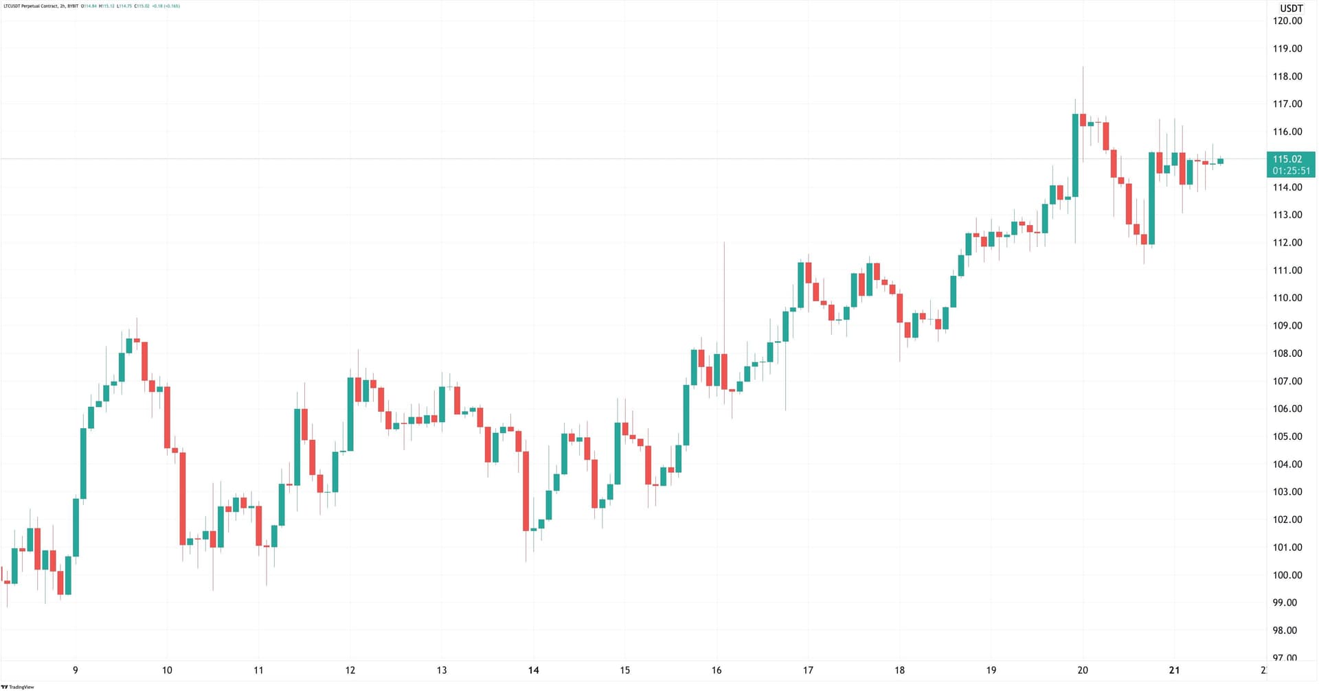 On the night of Sunday, March 20th, the LTC price hit 1 040 kroner ($119), which is the highest price seen this month. Like the rest of the market, LTC has had several tough weeks and the price has now fallen by over 70% since the peak price of 3 608 kroner ($413) which was set in May 2021