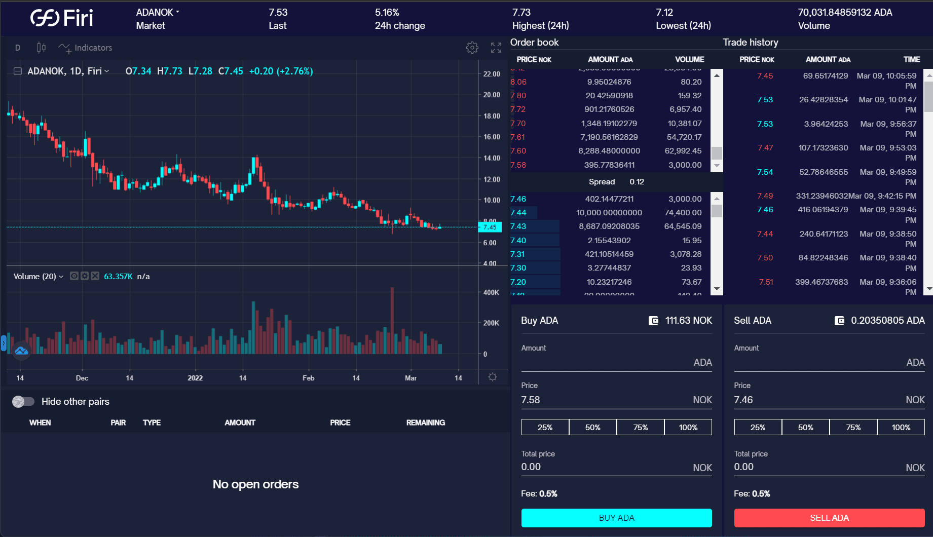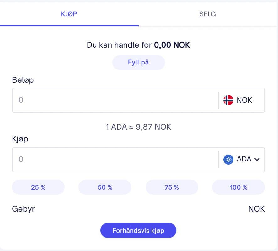 To be able to buy ADA via Firi, you must make a deposit in NOK. After you have made a deposit, you can easily use NOK to buy ADA via Firi. Alternatively, you can use one of our solutions for direct purchase.