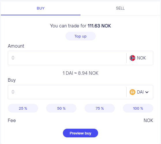 Buy DAI directly with Vipps, Apple Pay or bank card.