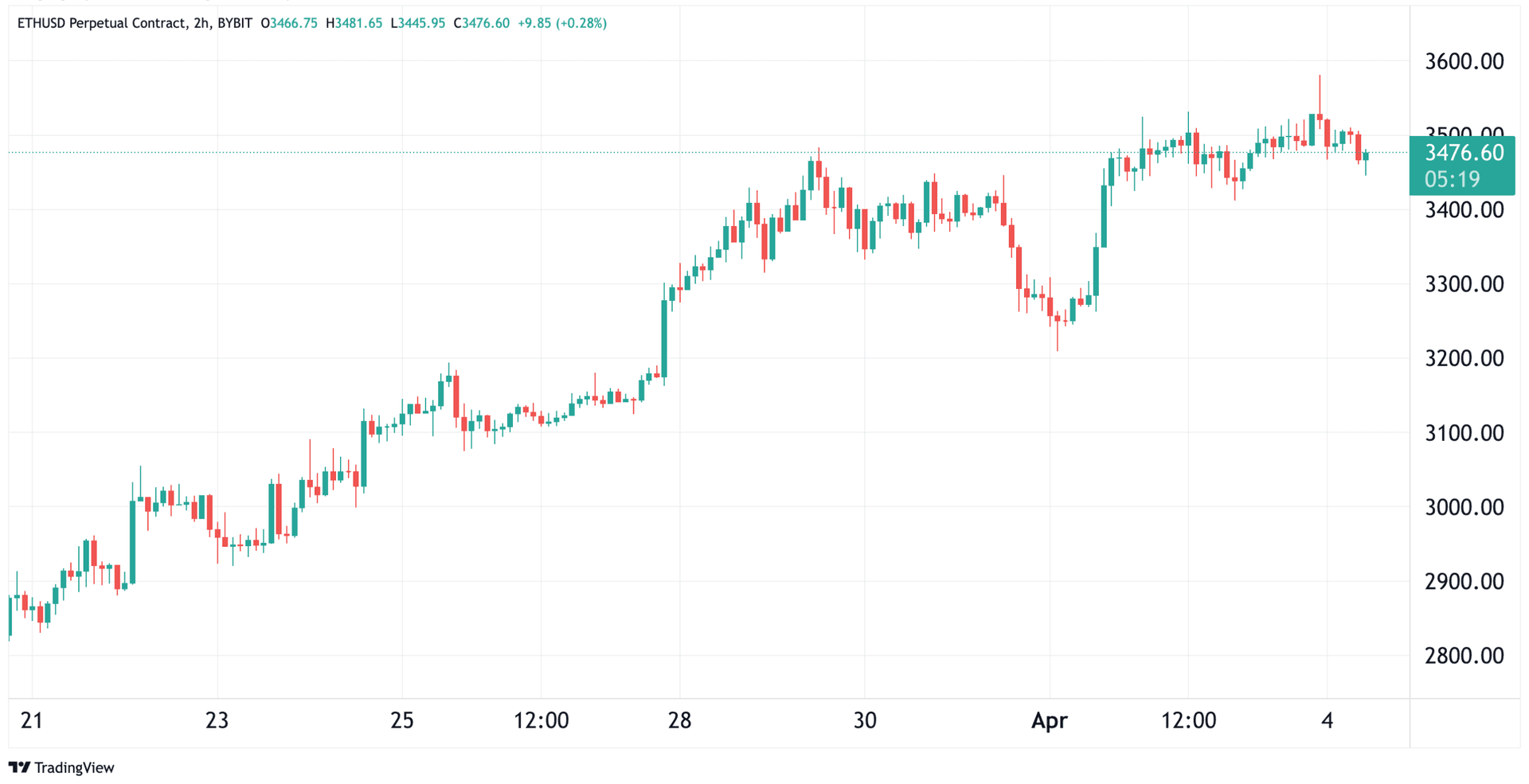 Ethereum har også hatt to veldig sterke uker og søndag kveld nådde kursen 31 150 kroner ($3 581), som er den høyeste kursen sett siden starten av januar. Siden 15 mars har kursen økt med 42%, fra 21 750 kroner ($2 500) til 31 150 kroner ($3 581).
