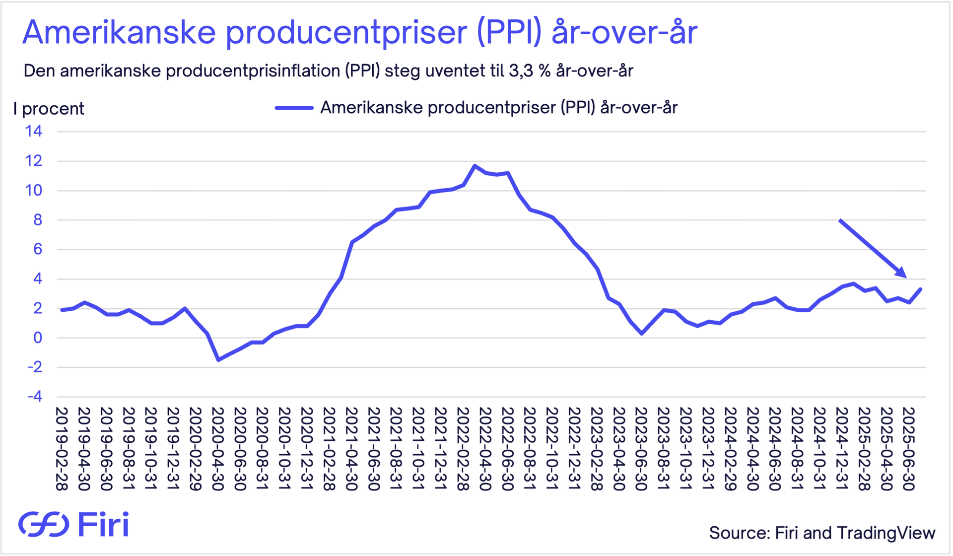 I mellemtiden medførte torsdag også en kraftig vending, udløst af den dags offentliggørelse af producentprisdata for juli fra BLS. Producentprisindekset (PPI), som måler inflation på engrosniveau, før omkostningerne når forbrugerne, steg til 3,3% fra juni måneds 2,4%. Markederne havde kun forventet 2,5%, hvilket gjorde dette til en betydelig negativ overraskelse.