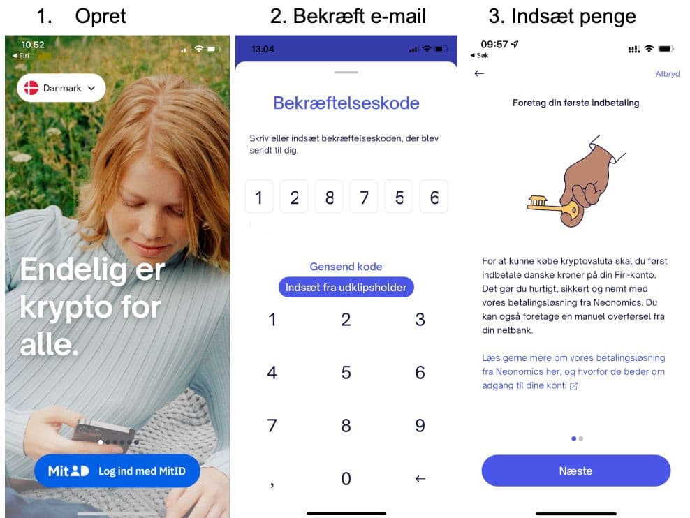 Før du kan købe ETH, skal du oprette og verificere din Firi konto med MitID. Du skal også udfylde en simpel kundekontrol formular (KYC = know your customer/kend din kunde).
