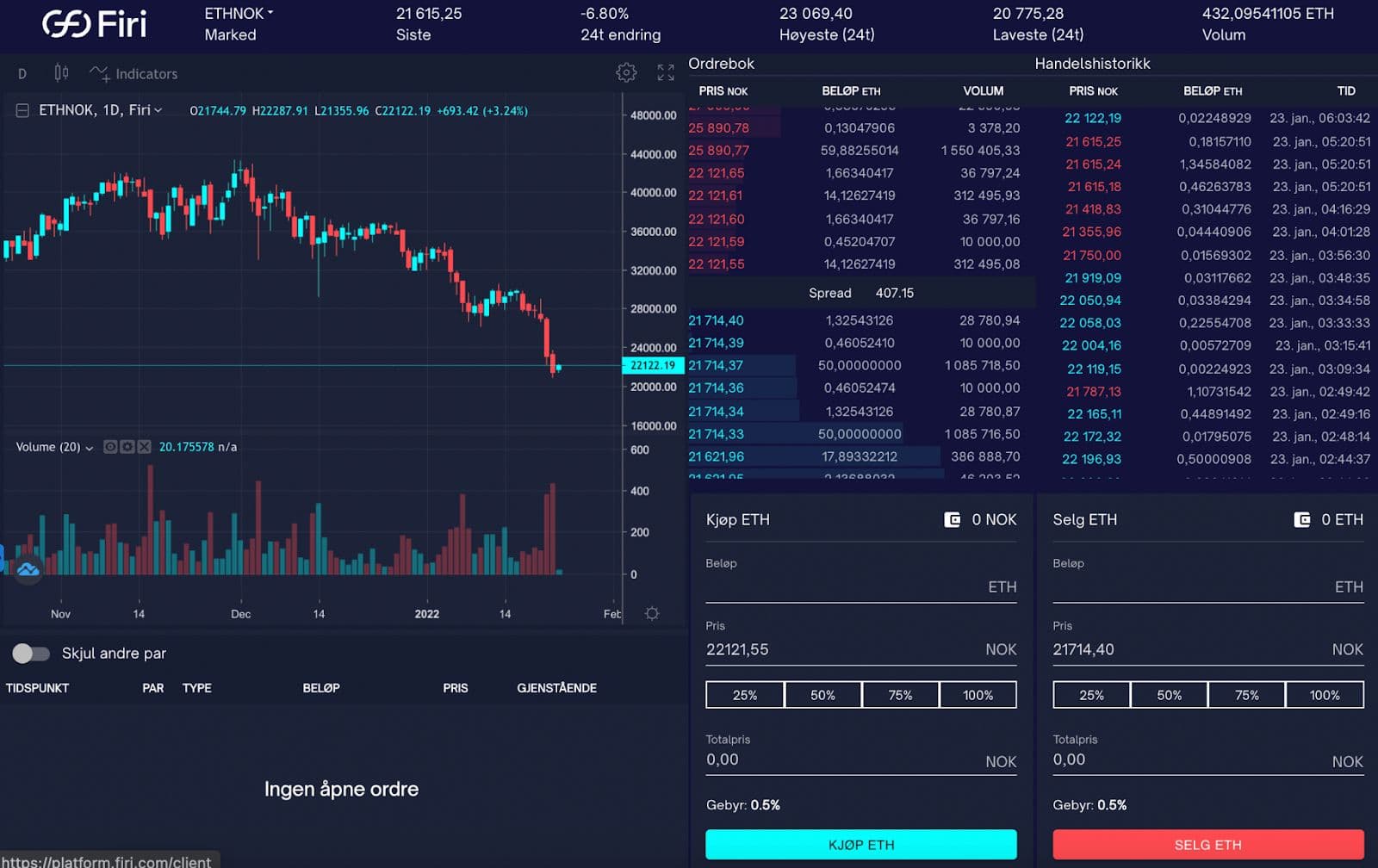 - Log ind på Firi og klik på Avanceret Handel i venstre side af Firi-dashbordet.