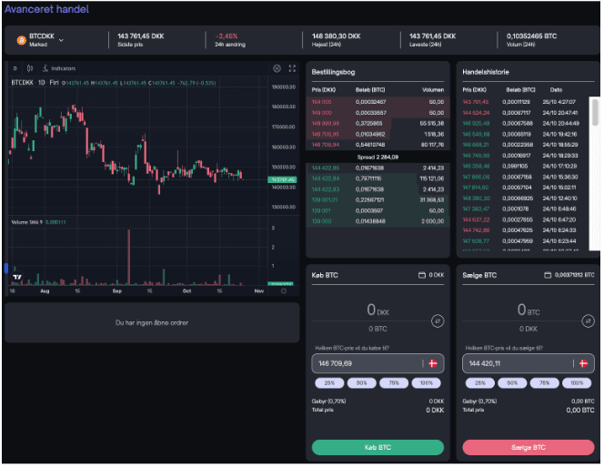Når du handler vil du få den bedst tilgængelige pris på SOL på tidspunktet for handlen (markedsordre). Men hvis du ønsker det, kan du også lægge en købsordre til en specifik pris i Avanceret handel. Det kommer vi tilbage til. Avanceret handel er kun tilgængelig via hjemmesiden.