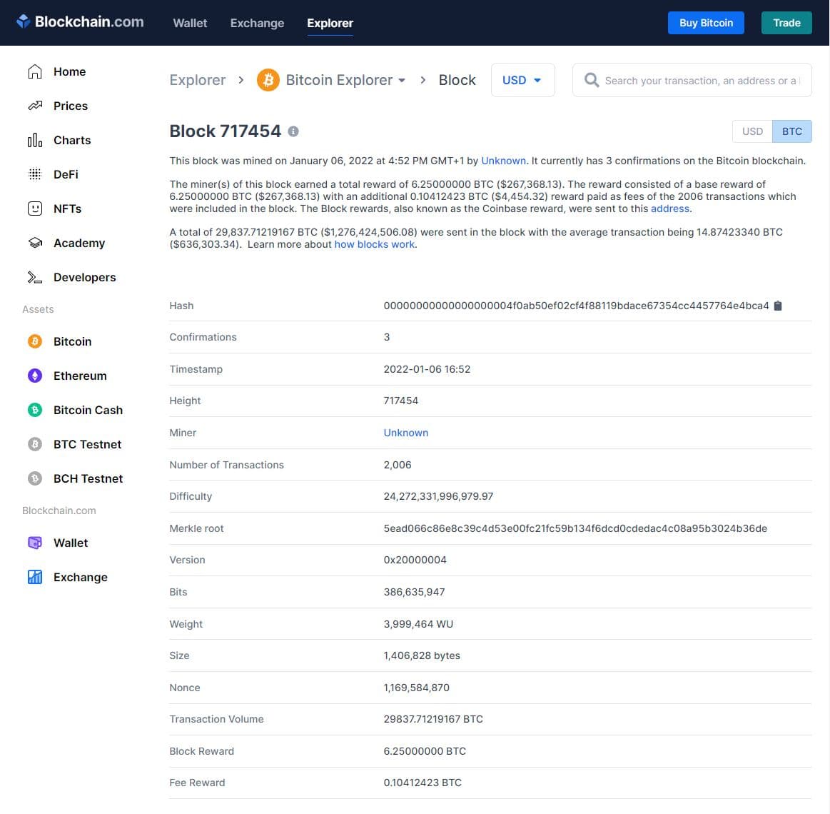 Her er et annet eksempel hvor man kan klikke seg inn på de enkelte blokkene med en blockchain explorer for Bitcoin. Siden inneholder en rekke data om bitcoin blokke som f.eks transaksjonene den inkluderer, tidspunkt og hvor mye minerne tjente på å mine denne blokken.
