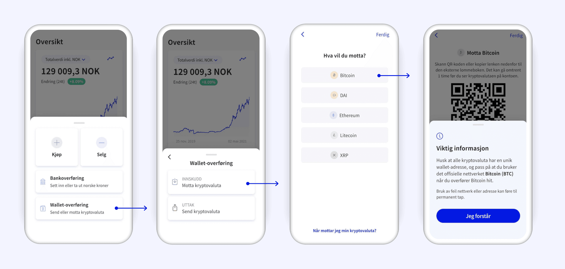Viktig! Det er ulike adresser eller lommebøker til ulike kryptovaluta.